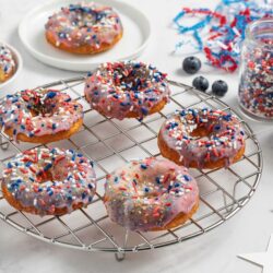 While this is the ultimate 4th of July donut recipe, its appeal is far broader. These red white and blue donuts are a festive and delicious way to start off your favorite summer holidays. Think beyond Independence Day. They are perfect for: