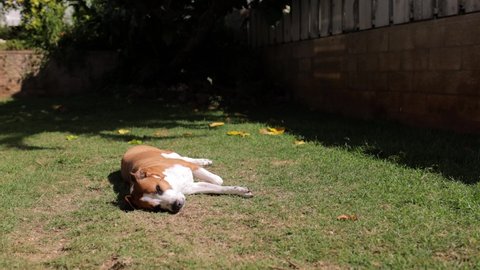 Lazy Brown White Dog Lays Sun Stock Footage Video (100% Royalty-free