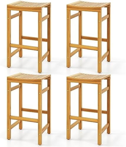 Outdoor Wood Bar Stools Set of 4, Patio Bar Stools with Ergonomic Seat