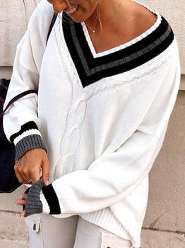 Emmiol Free shipping 2026 Preppy V Neck Striped Splice Knit Sweater